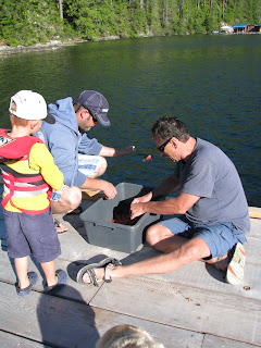 We were so fortunate to get a cabin trip with Grandma Liz, Papa Dave, and Auntie Heather. The weather was a bit cool and the fishing was pretty slow, but we still had a great time. Highlights for Grady included taking Ryder to shore, fishing with Auntie Heather out of his boat, exploring the shoreline with Grandma Liz, getting firewood with Daddy, prawning with Papa Dave, and a beautiful afternoon fishing at the Lighthouse.